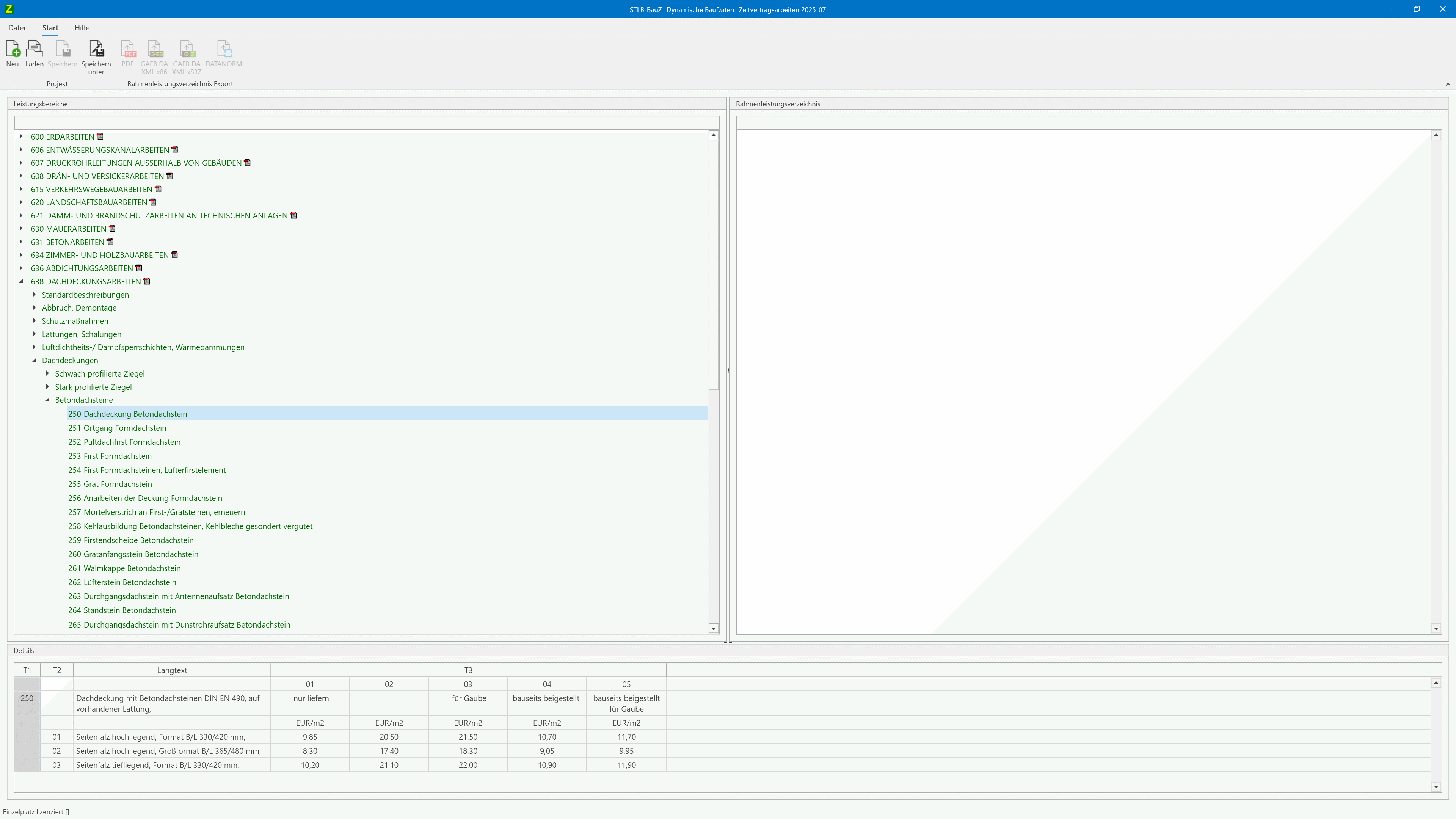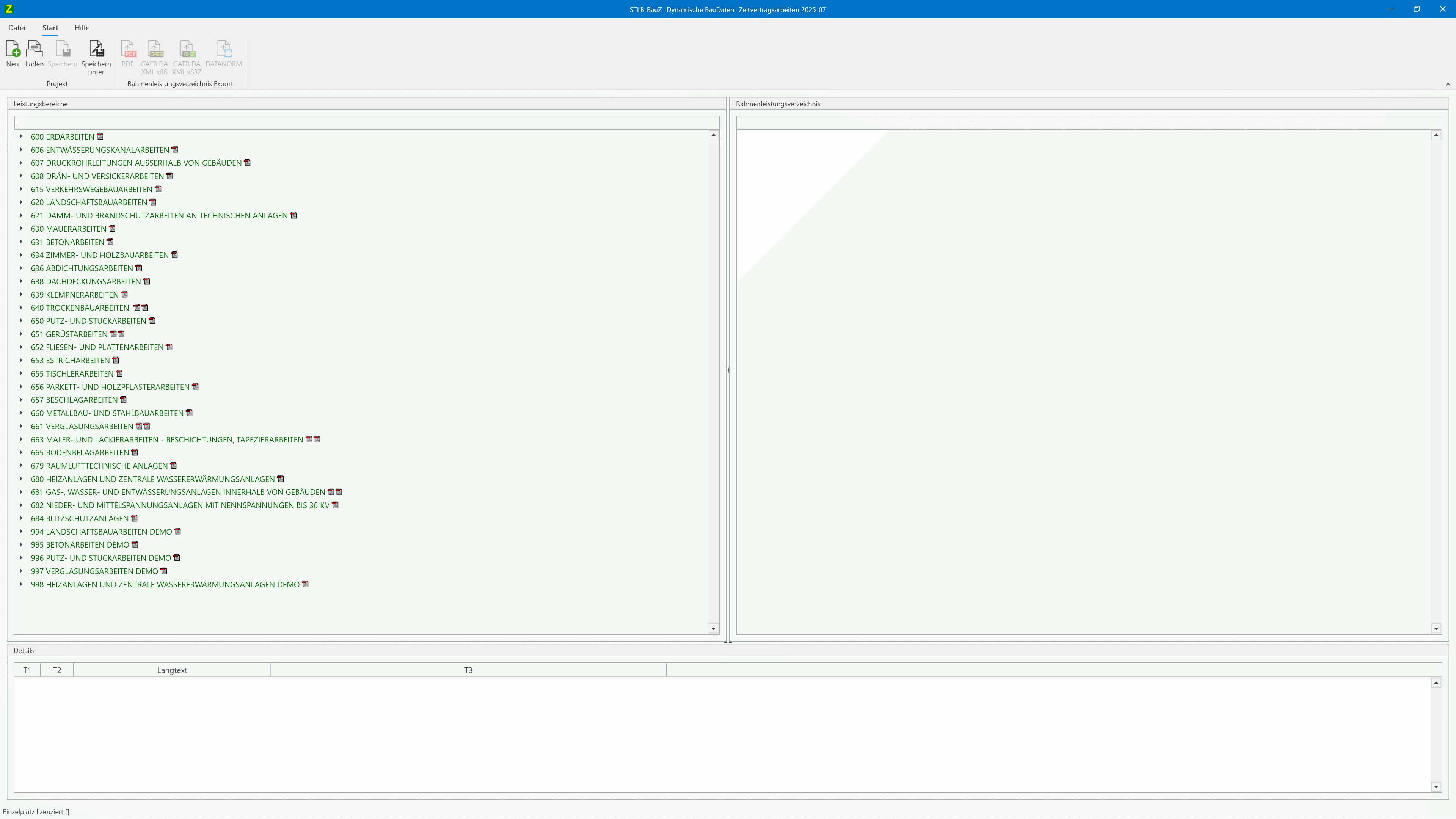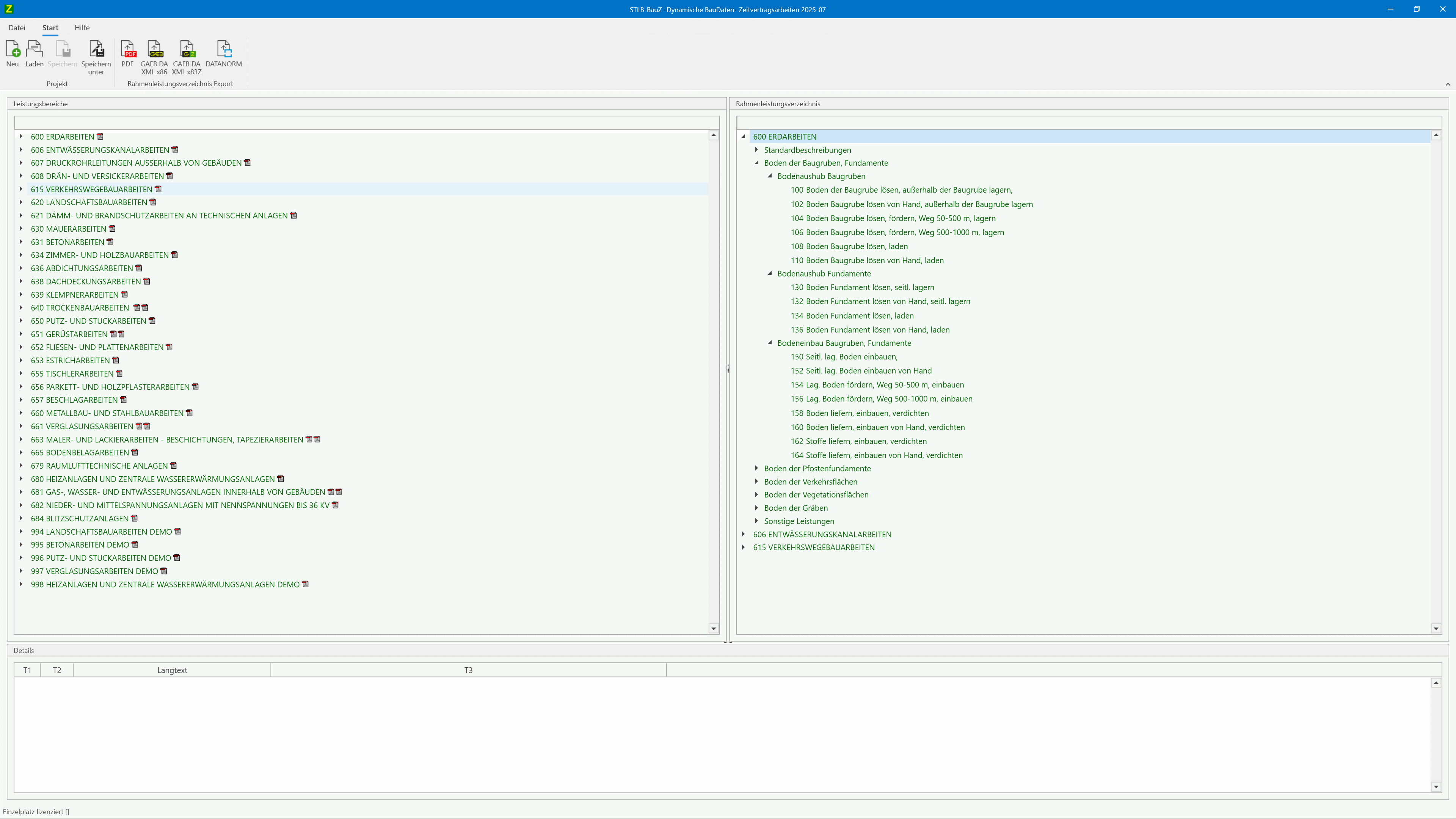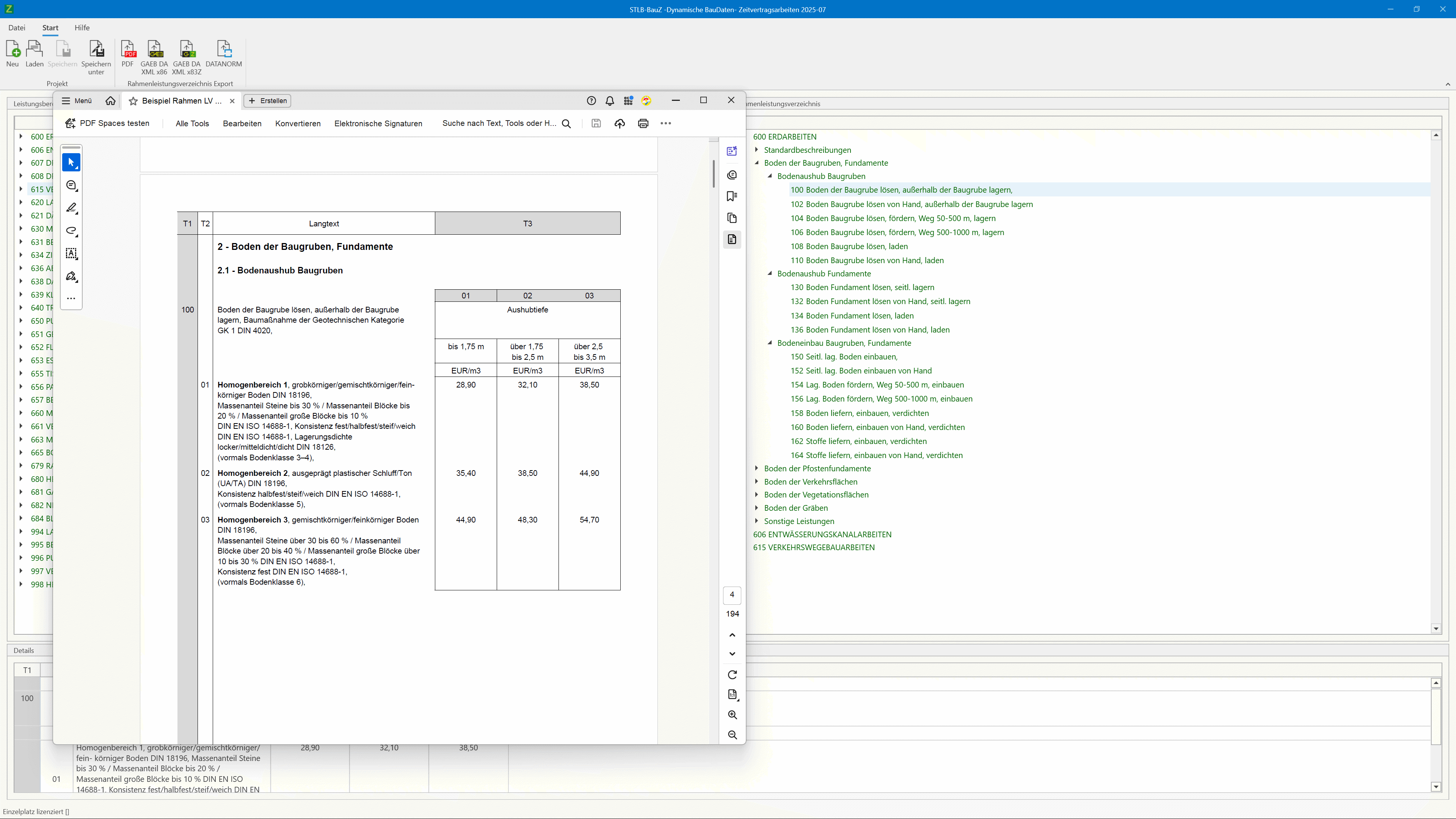 Mit STLB-BauZ erstellen Sie vollständige Rahmen-LVs strukturiert und zügig. Sie können Ihre Daten als PDF dokumentieren oder in den Formaten GAEB und DATANORM exportieren und in AVA- sowie Kalkulationssystemen weiterverarbeiten.